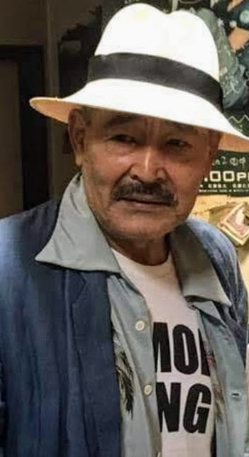 ※藤竜也氏画像:弊社2015年作製「HONMOKU GANG 小池 前面プリント Tシャツ」(撮影:2016年)