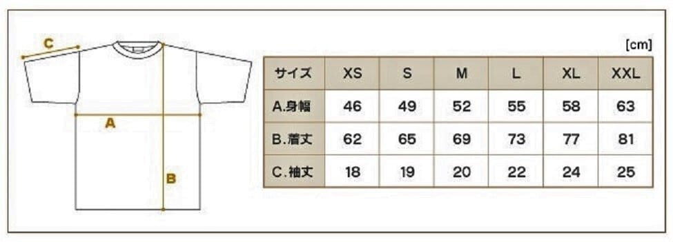 尚、サイズS、XXL(3L)、XXXL(4L)は、別注サイズのため製作費¥1,100円増しとなります)